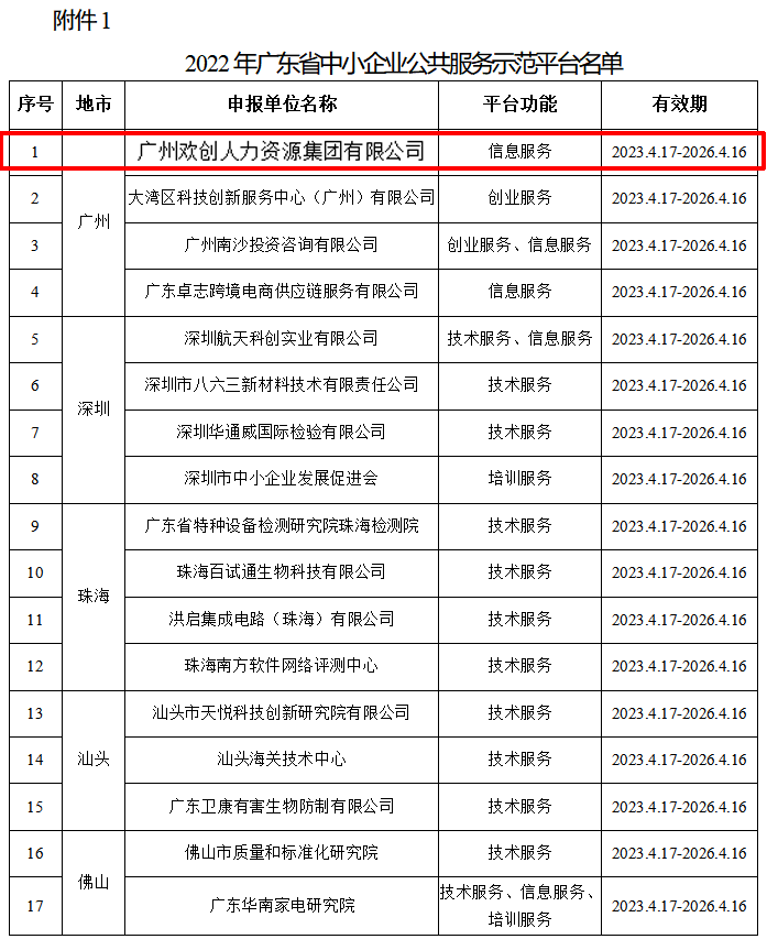 欢创集团被认定为2022年广东省中小企业公共服务示范平台